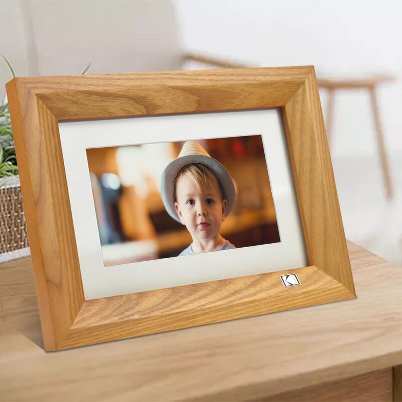 Gardez vos plus beaux souvenirs à portée de main grâce au Kodak RDPF-700. Ce cadre photo numérique est doté d'un écran LED de 7 pouces pour un affichage clair et facile de vos photos. Ses fonctions horloge et calendrier en font un appareil pratique au quotidien. Son élégant cadre en bois, disponible en noir ou en bois clair, complète un design intemporel qui s'intégrera parfaitement à votre intérieur.