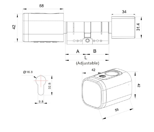 Unlocking Methods Fingerprint PIN Code IC Card Bluetooth APP Unlock Mechanical Key Material: Aluminium AlloyPower Supply: 3 × AAA batteries
